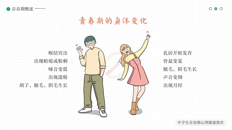 1:身体外貌产生巨大变化 2:男女性征差异更加显著